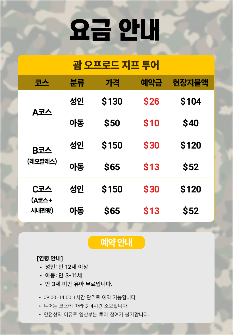 * 안전상의 이유로 임산부는 투어 참여가 불가합니다.