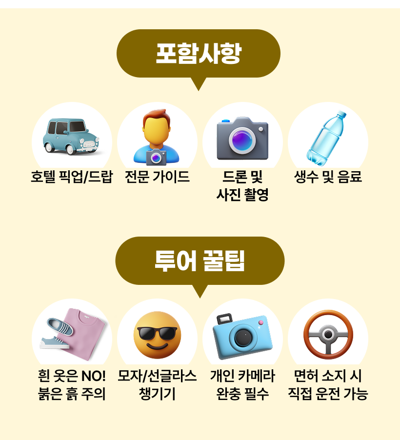 - 드론 및 사진 촬영 (기상 상황에 따라 드론 촬영은 불가할 수도 있습니다)