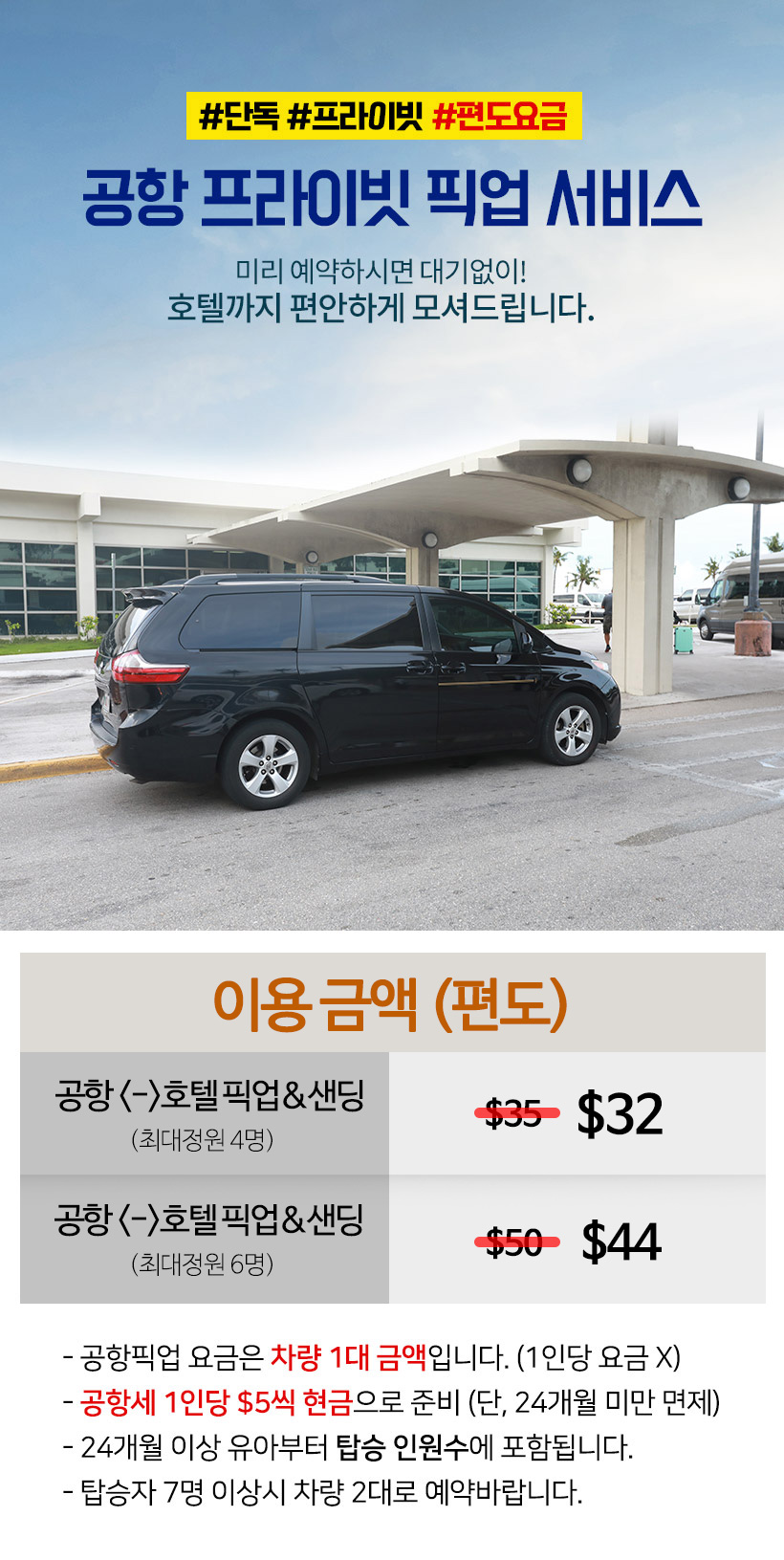 상품 : 공항 픽업 프라이빗 서비스(편도) (괌공항 오후도착)