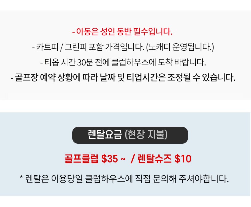 * 클럽 렌탈 비용은 현장에서 결제 해주시기 바랍니다.