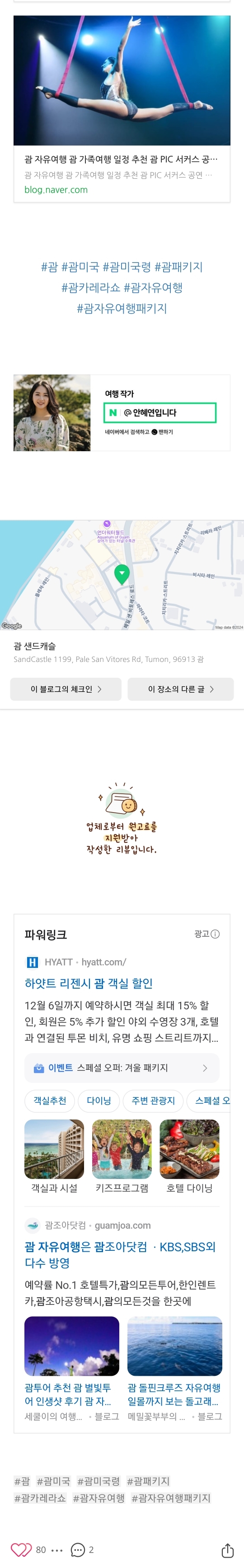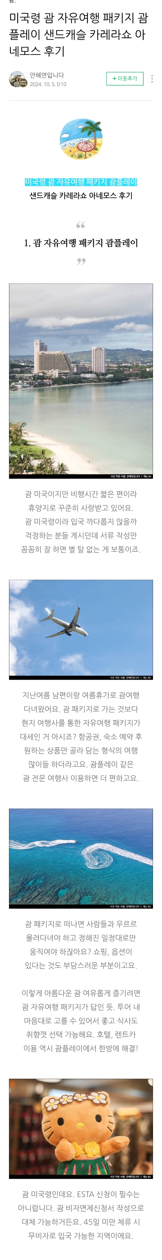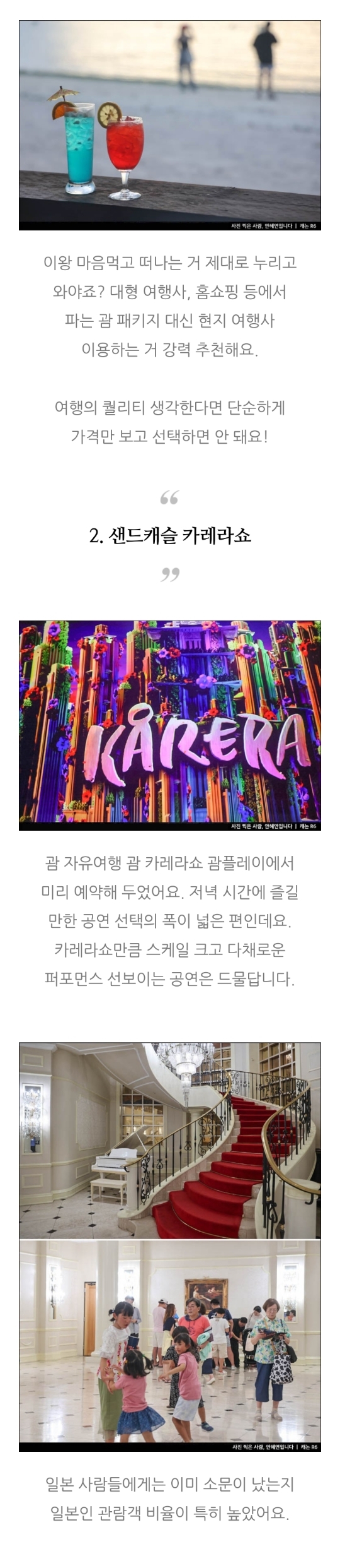 괌 자유여행 패키지 괌플레이 샌드캐슬 카레라쇼 아네모스 후기