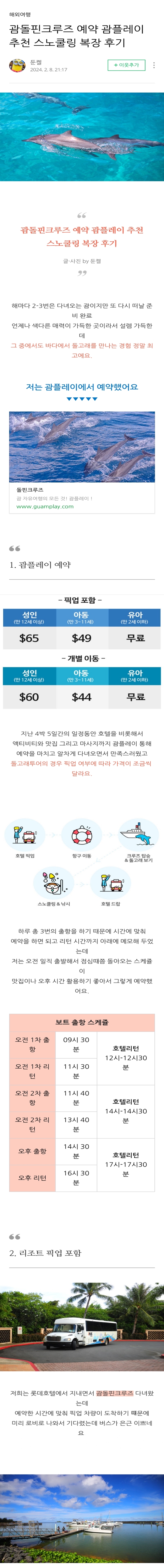 과 ㅁ돌핀크루즈 예약 추천 스노클링 복장 후기