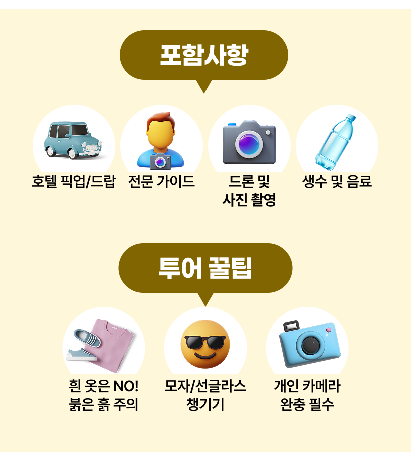 - 기상 악화 시 안전을 위해 드론 촬영이 제한되거나 코스가 변경될 수 있습니다.