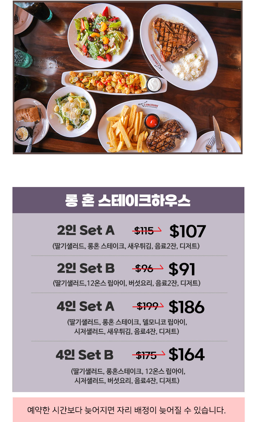 괌 플레이 통해서 예약하니깐 세트 메뉴로 먹는게 훨씬 저렴하네요...! 참고로 세트메뉴는 롱혼에서 따로 없는걸로 알고 있어요 ㅎㅎ 먼저 예약하고 가는게 훨씬 싸네요,...!! 왜 이걸 몰랐는지 전에 예약 없이 갔을 때 30만원 정도 나왔는데 이번에는 15만원으로 디저트까지 뽕을 뽑고 왔습니다..ㅎㅎ