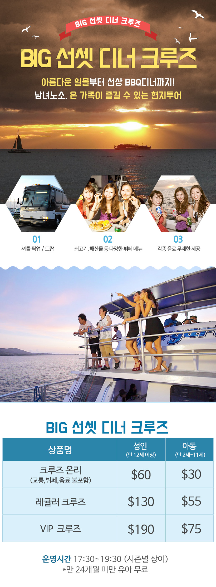 - 디너크루즈, 바베큐뷔페, 무제한 맥주&음료 (크루즈 온리 상품 제외)