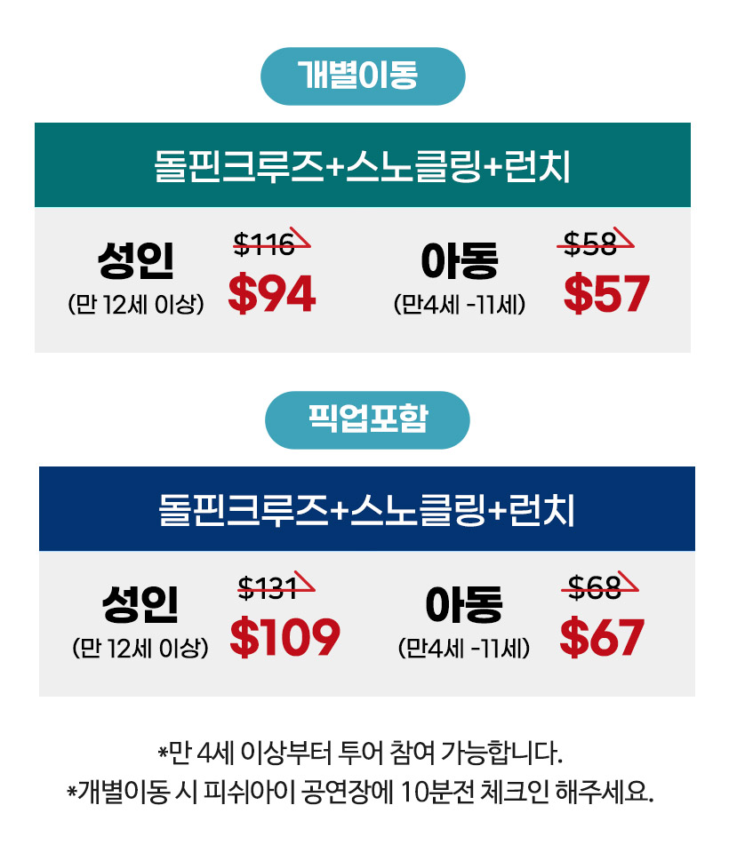 돌핀크루즈+스노클링+점식식사