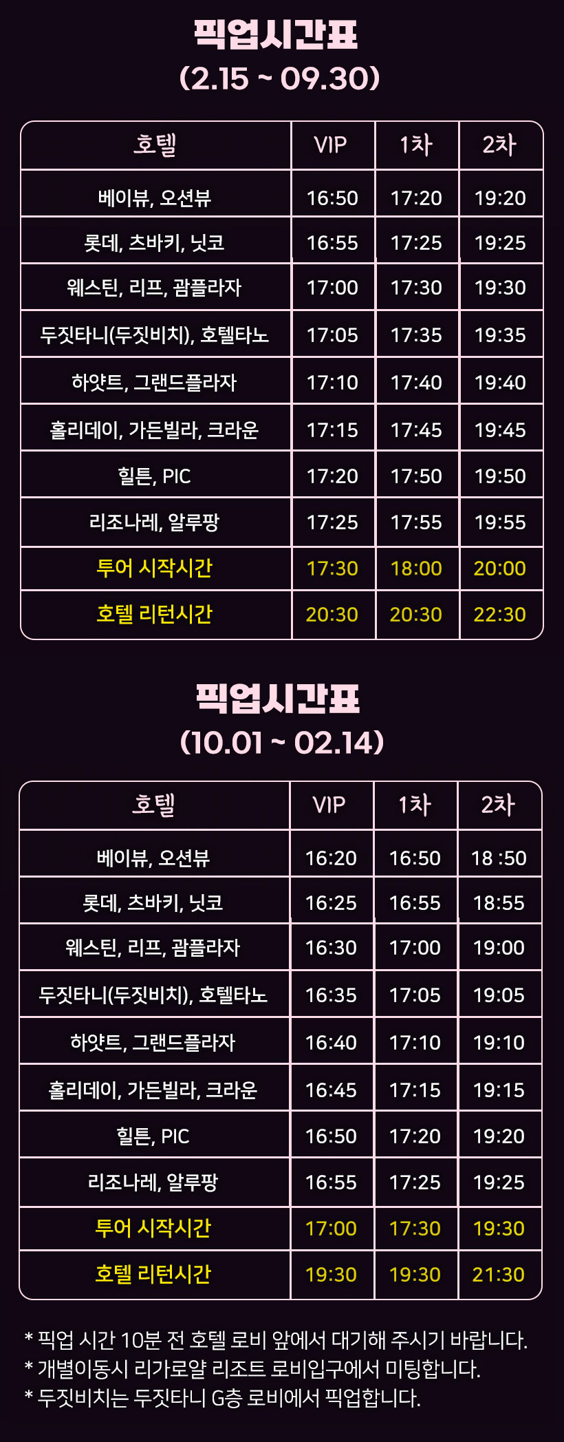 - 별빛투어 픽업 드랍 서비스 (개별이동 불가)