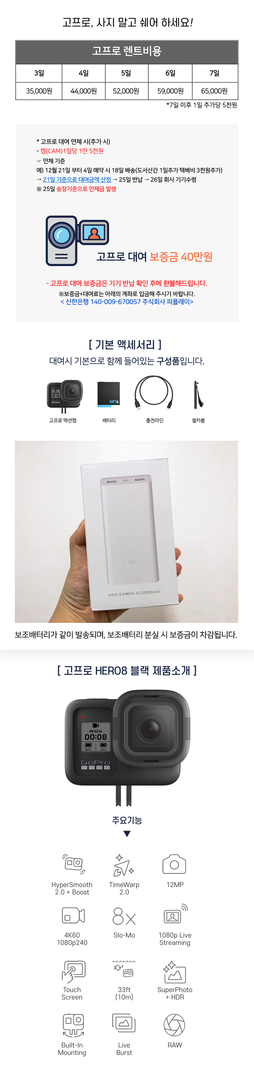 1. 액션캠 대여시 대여일수에 따른 비용과 보증금액을 입금해주세요.