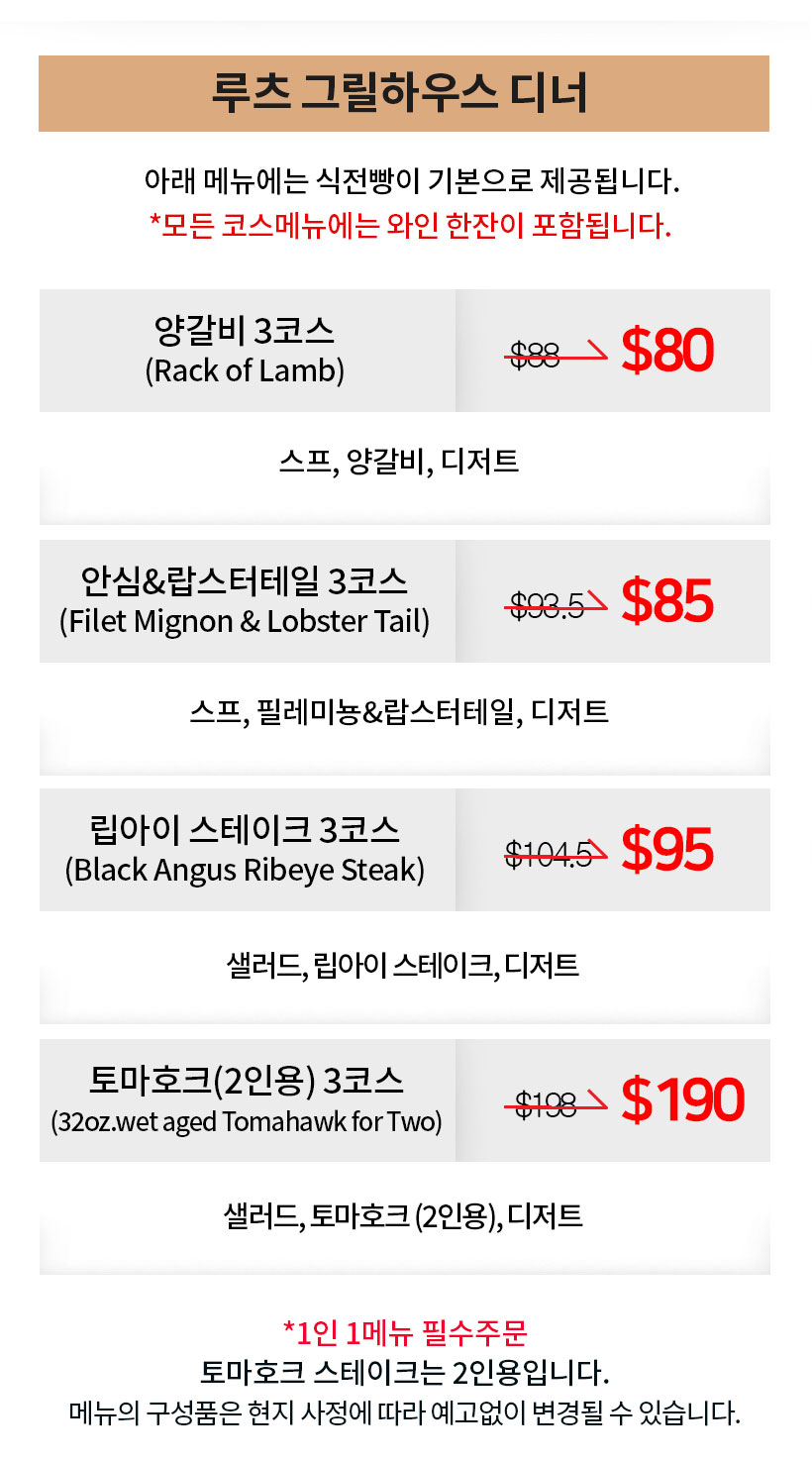 상품 : 루츠 레스토랑 디너