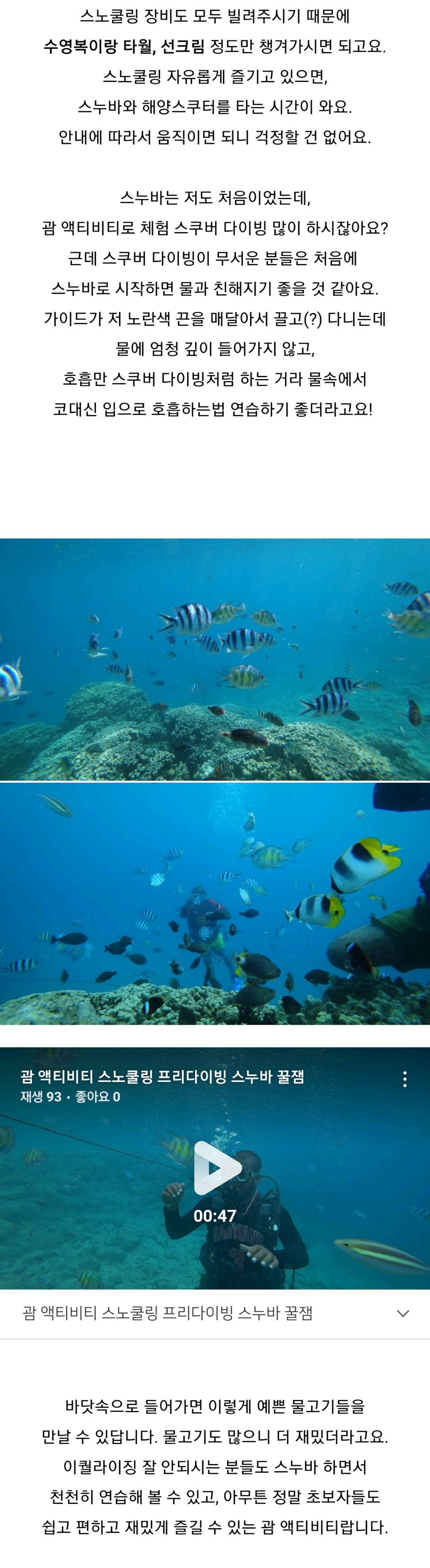 괌 액티비티 스노클링 프리다이빙 스누바 꿀잼