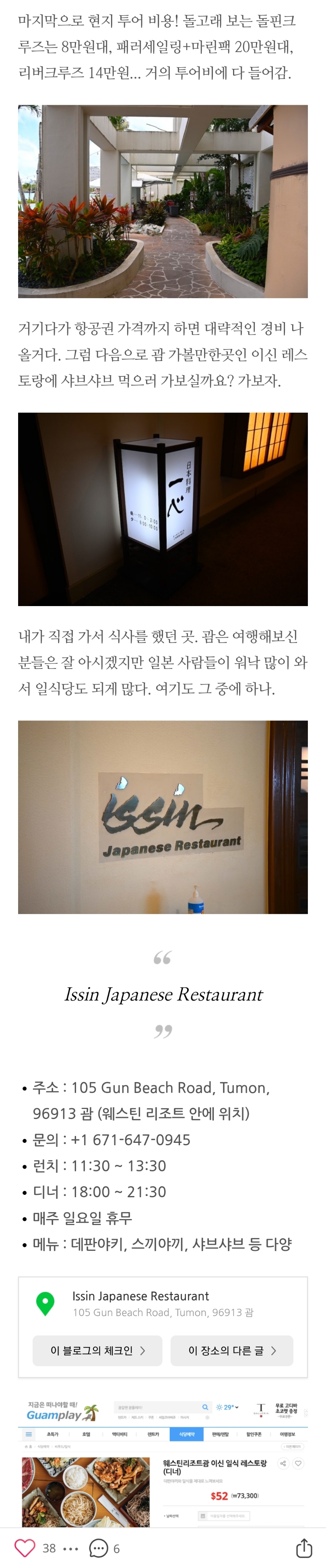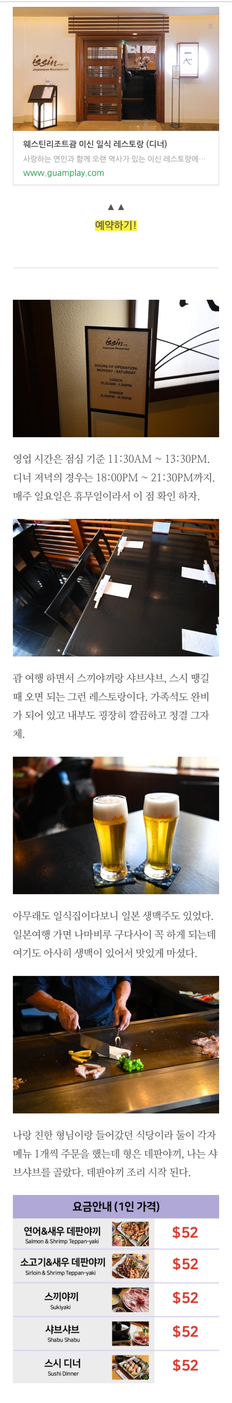 괌 웨스틴리조트 이신 레스토랑 추천