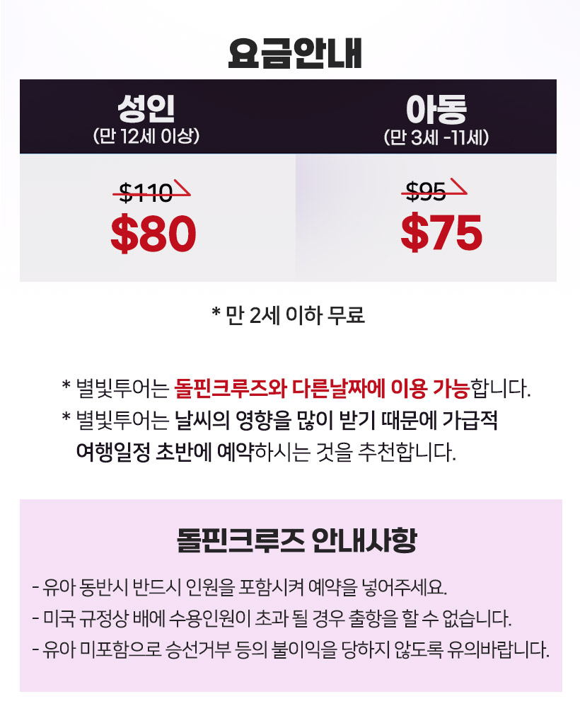 돌핀크루즈 : 1차 09:30, 2차 11:40