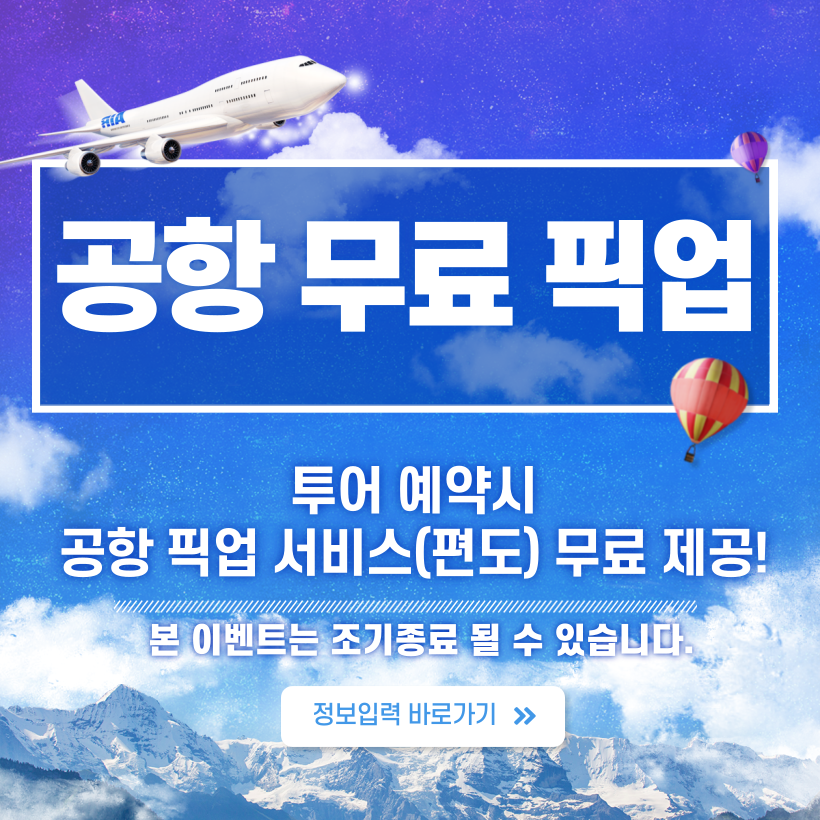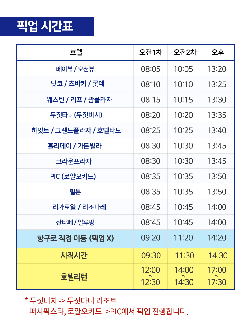 - 픽업시간은 현지 교통사정에 의해 조금 늦어질 수 있는 점 양해부탁드립니다.