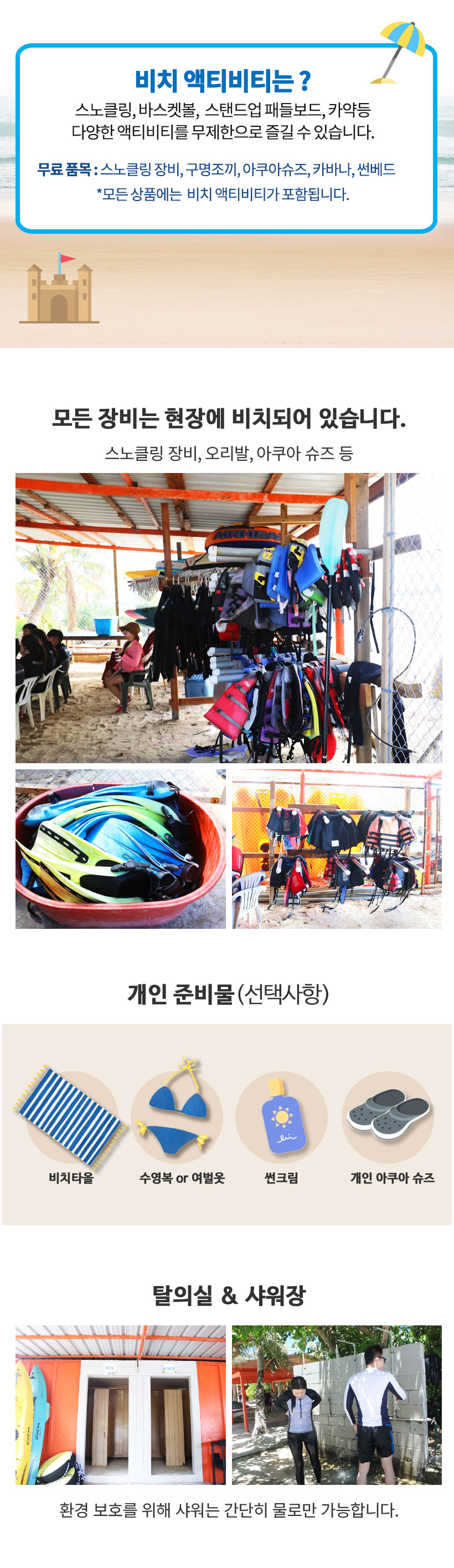 - 물고기에 물리거나 날카로운 산호에 다치지 않도록 개인안전에 주의하시기 바랍니다.
