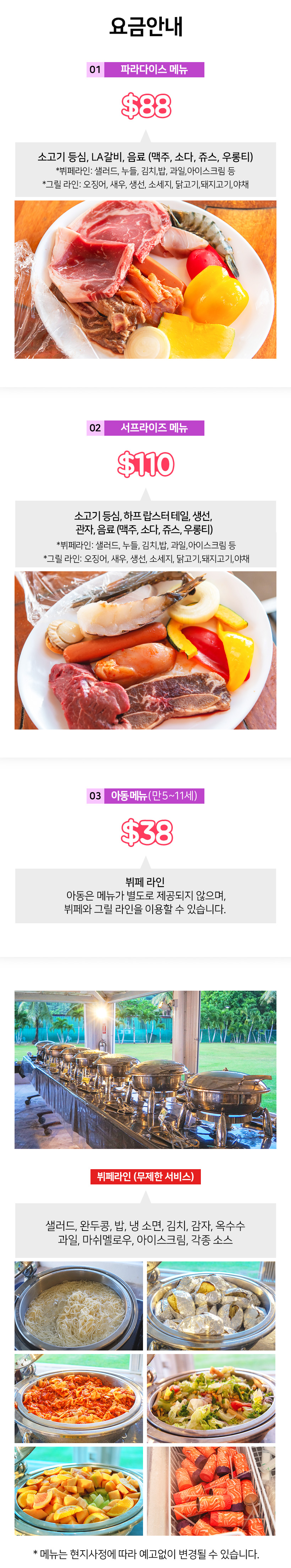 ※ 유아(무료)는 메뉴가 제공되지 않습니다.