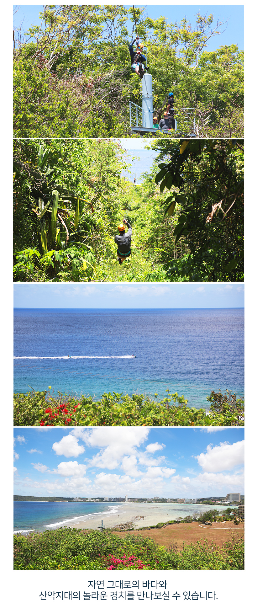 한번도 짚라인 투어를 해본적이 없어 이번 괌여행중 신청했습니다. 6개정도 코스를 가게 되고 마지막엔 바다를 바라보며 대미의 장식을 합니다.