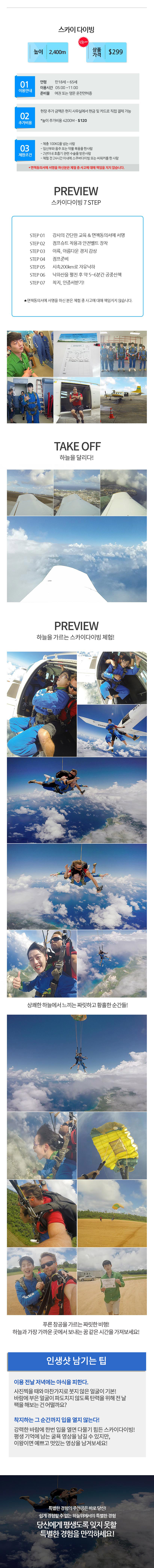 - 스카이다이빙을 체험하기 24시간이내에는 스쿠버다이빙,씨워커를 삼가 해주세요.