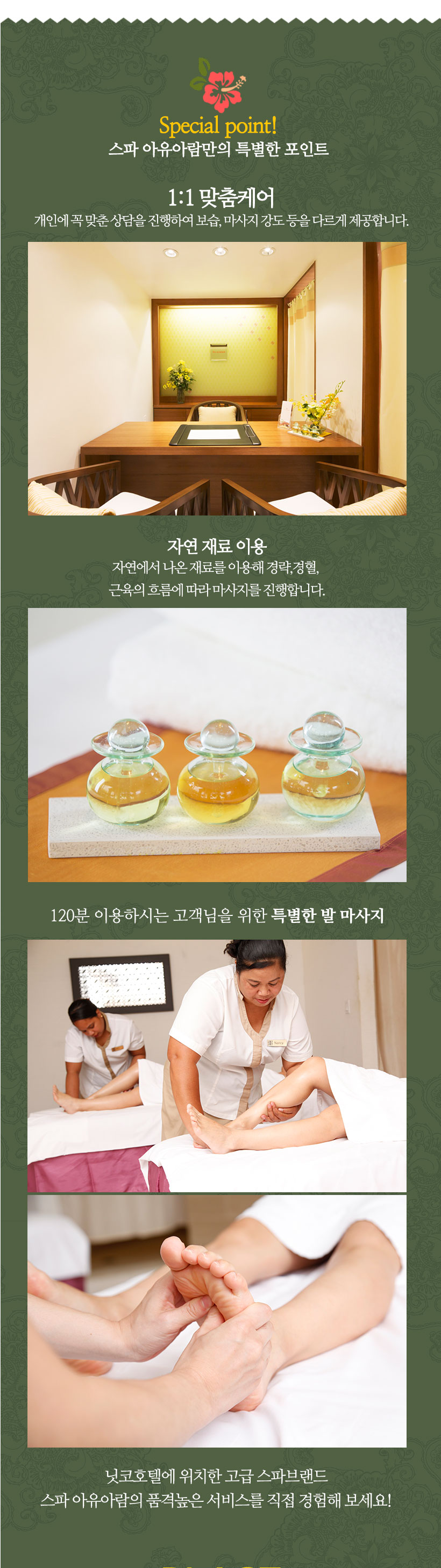 호텔 퀄리티나 테라피스트들의 퀄리티들이 가장 높아 만족도도 높은 스파 아유아람, 잘 다녀오셔서 기쁩니다