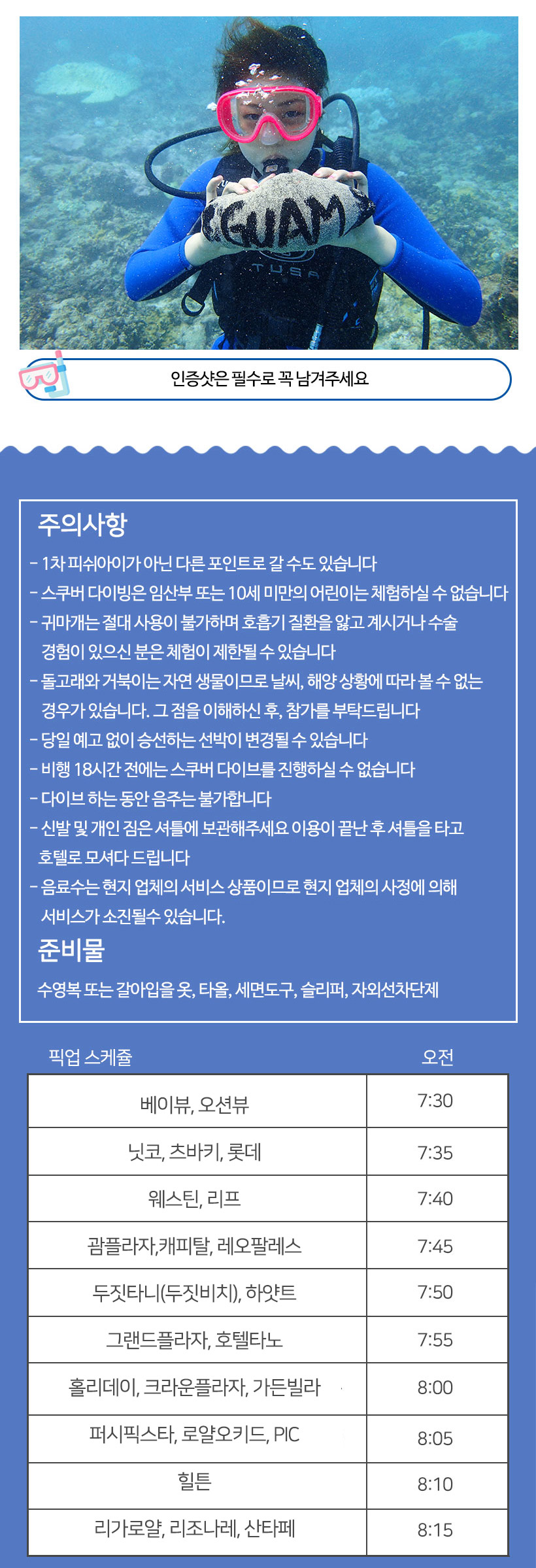 상품 : 괌 두번 체험 스쿠버다이빙 (오전)