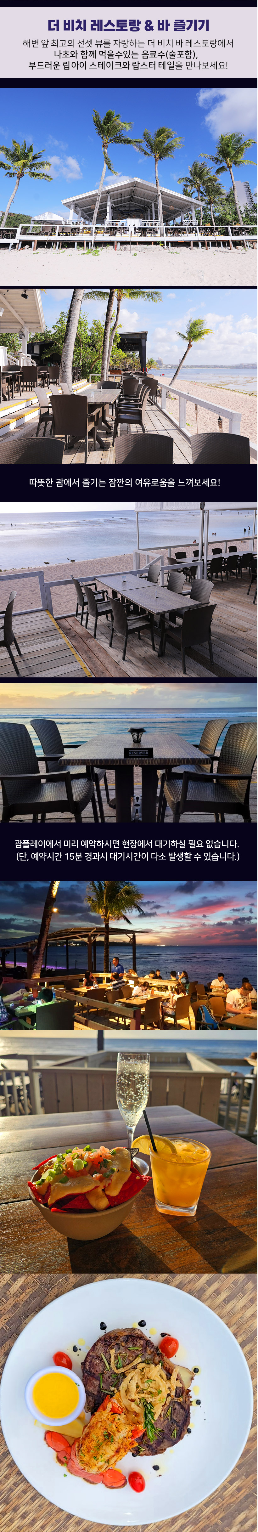 모든 연령 이용 가능! 비치바에서 음식 또는 음료 주문 시 무료 관람이 가능합니다.