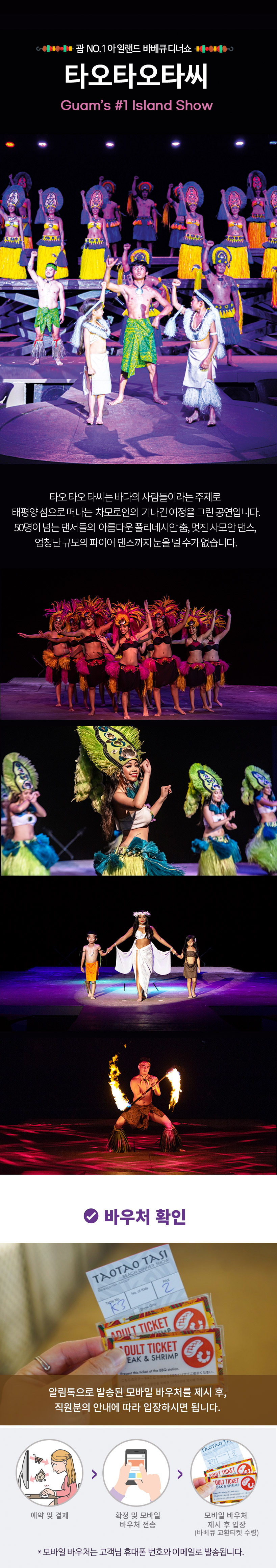 괌에 다녀온 지인의 추천으로 예약하게 되었는데, 친구들과 잼나게 보고, 먹고 왔습니다. 공연 중간에 댄스 배틀, 고민하다 서로 미루다 못나갔는데... 돌아오는 길에 모두들 아쉬워했습니다. 가실 분들은 꼬~옥 함 해보셨으면 하네요.