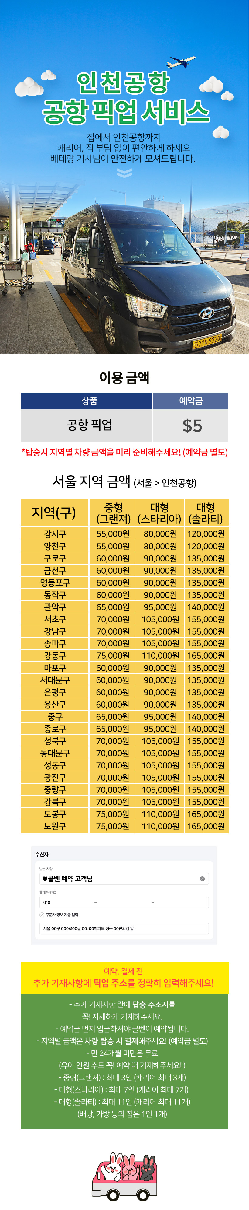 • 인천공항 픽업 프라이빗 서비스(편도)