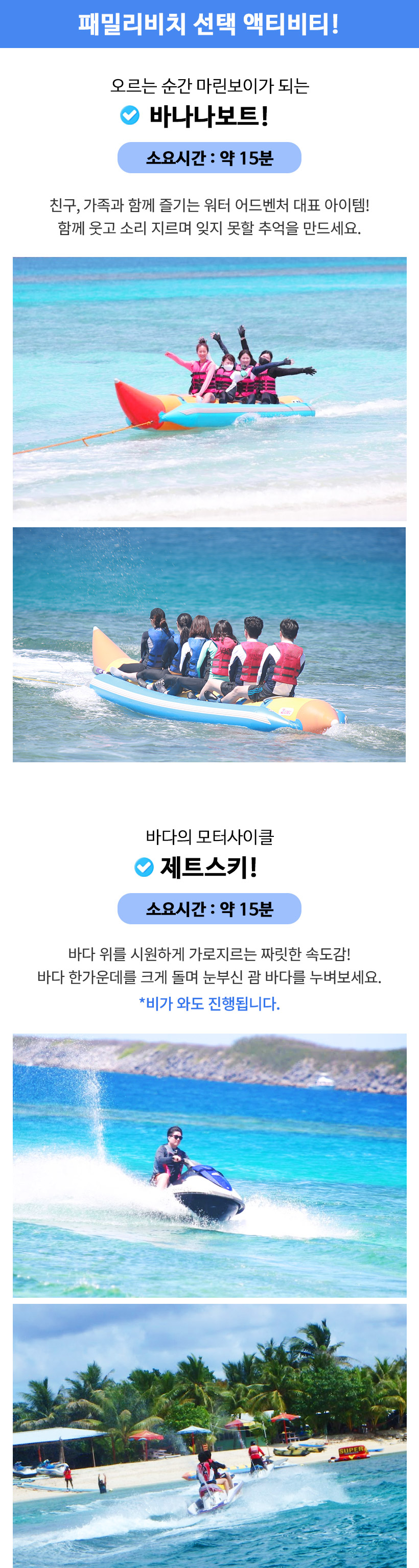 - 안전장비를 반드시 착용해야 하며 안전요원의 보호 없이 바다 뛰어드는 행위는 금지합니다.