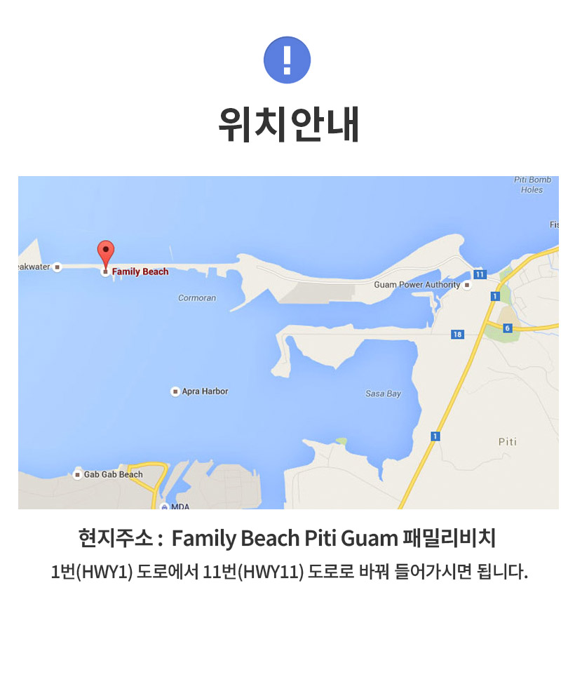 개별이동시 - 구글검색: Family Beach Piti Guam (패밀리 비치) 를 검색해주세요