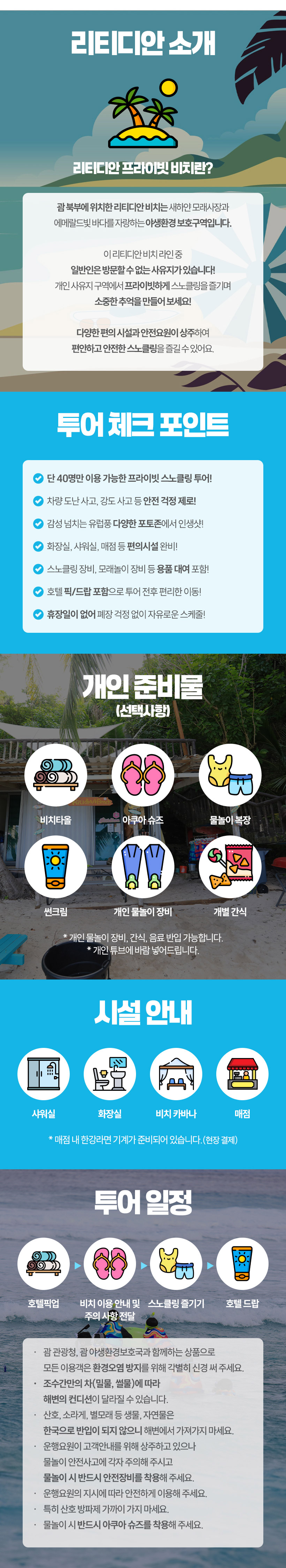 -해당상품은 괌 관광청, 괌 야생환경보호국과 함께하는 상품으로 모든 이용객은 환경오염 방지를 위해 각별히 신경 써 주세요.