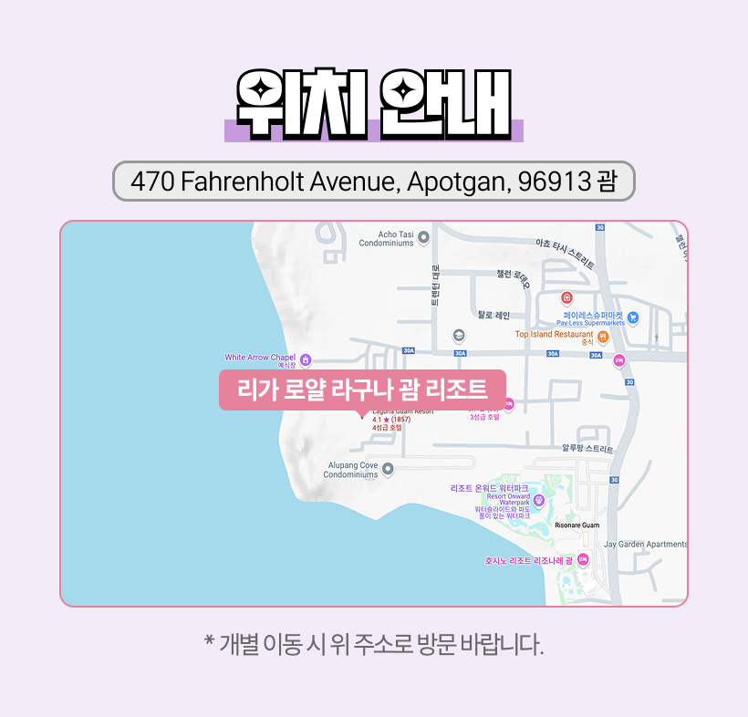 주 소 : LOT-2148-3-1 WINNER APT A-17 BAZA ST TAMUNING GUAM