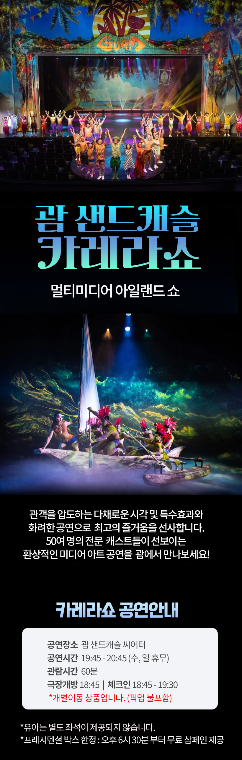 - 샌드캐슬 극장내의 공연 시설물을 만지거나 부상을 입지 않도록 유의바랍니다.