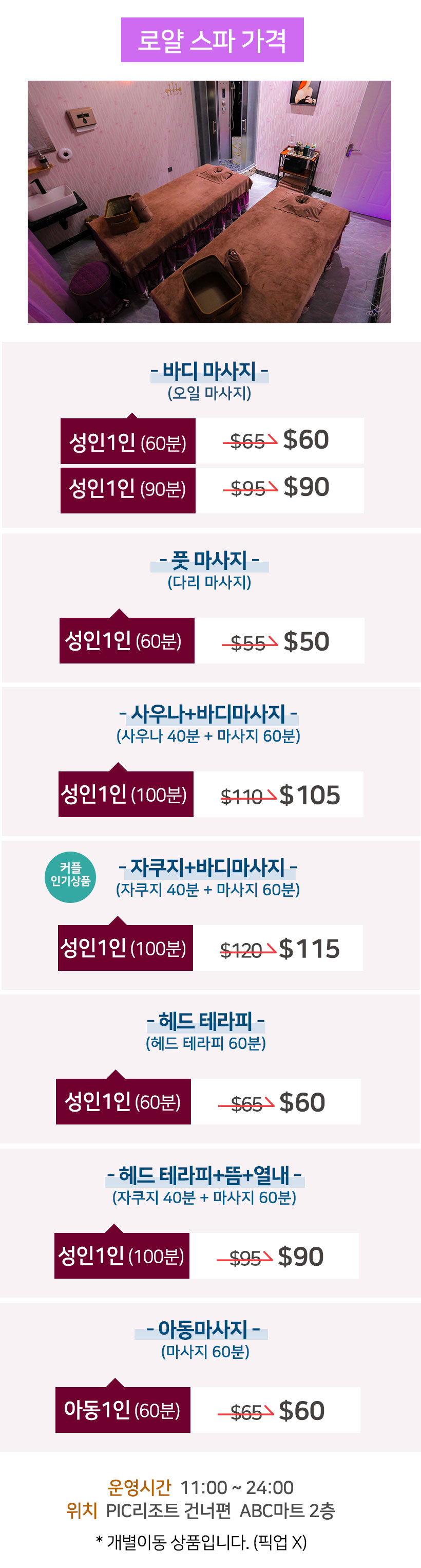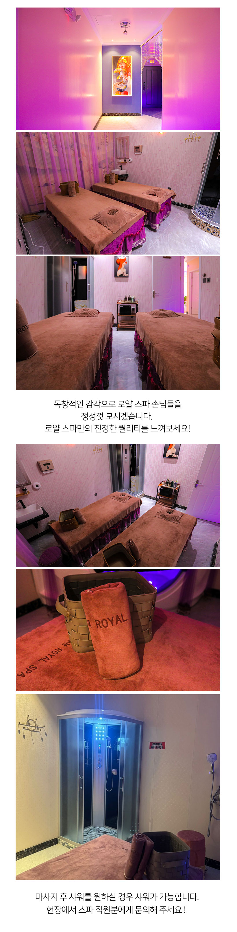 여행으로 지친 몸을 힐링할 수 있는 고퀄리티 스파샵, 로얄 스파입니다~