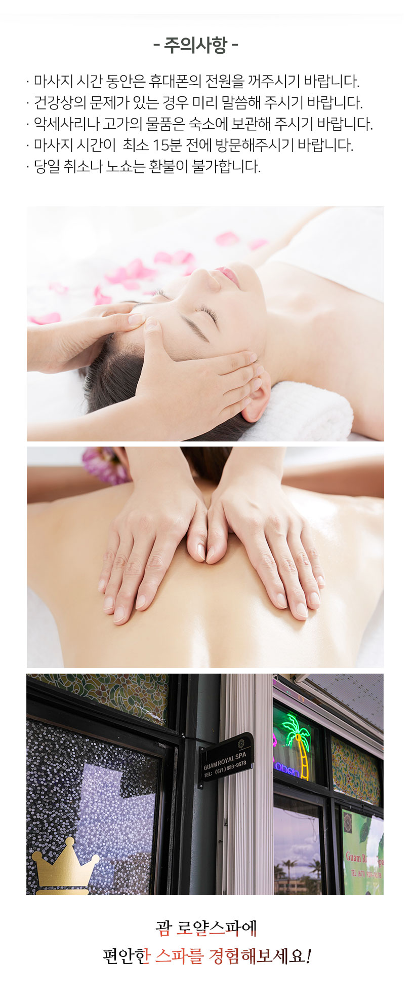 - 마사지하시는 동안 핸드폰은 꺼주시기 바랍니다.