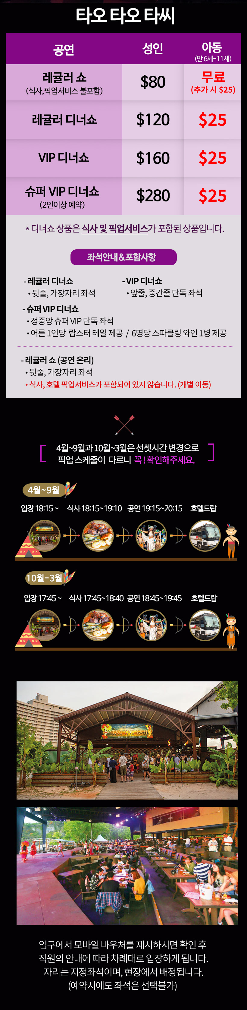 4-9월 (입장: 18:15~ / 공연: 19:15-20:15 / 리턴: 약 20:25~)