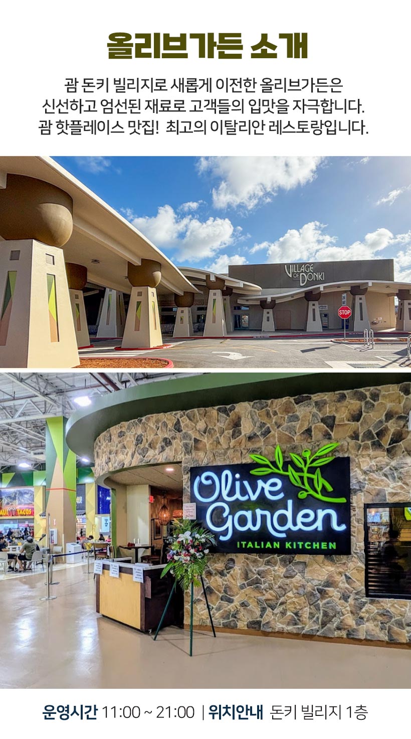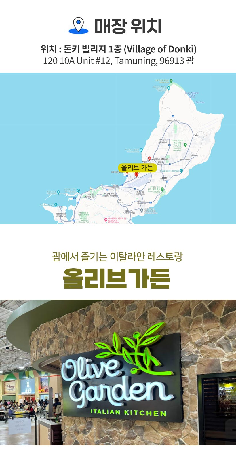 괌에서 이런 가성비 레스토랑을 보기 힘들죠~! 퀄리티도, 가격도 완벽한 이탈리안 레스토랑 올리브 가든! 다음에도 또 이용해주세요 ^^