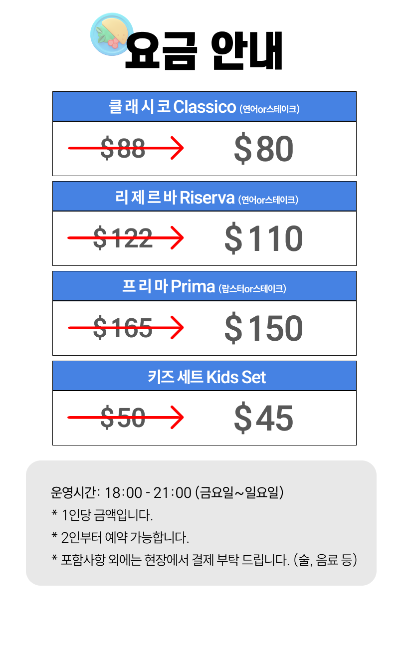 - 무료 유아는 메뉴가 따로 제공되지 않습니다.