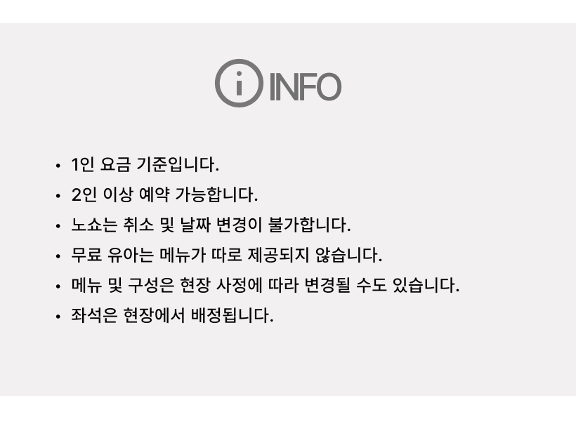 - 현지사정에 따라 음식을 제공하는 방식은 변경될 수 있습니다.