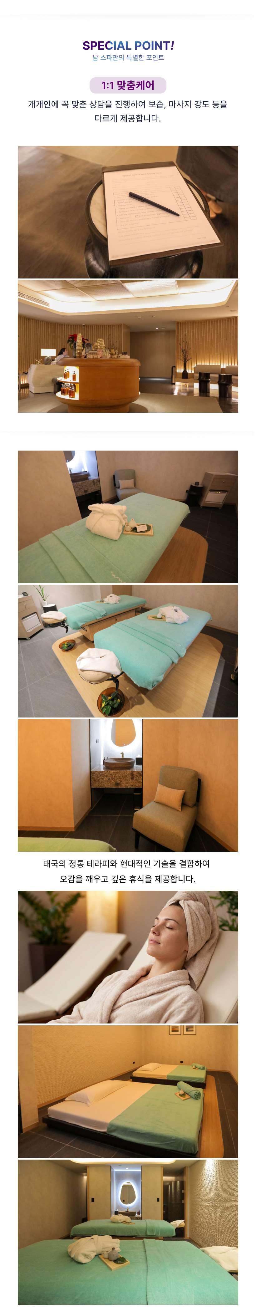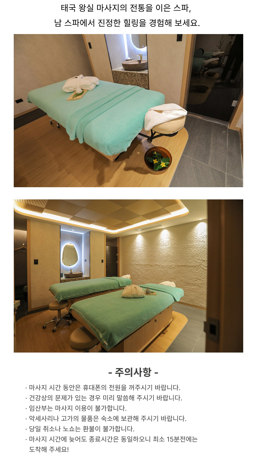 - 마사지 시간에 늦어도 종료시간은 동일하오니 최소 15분전에는 도착해주세요!