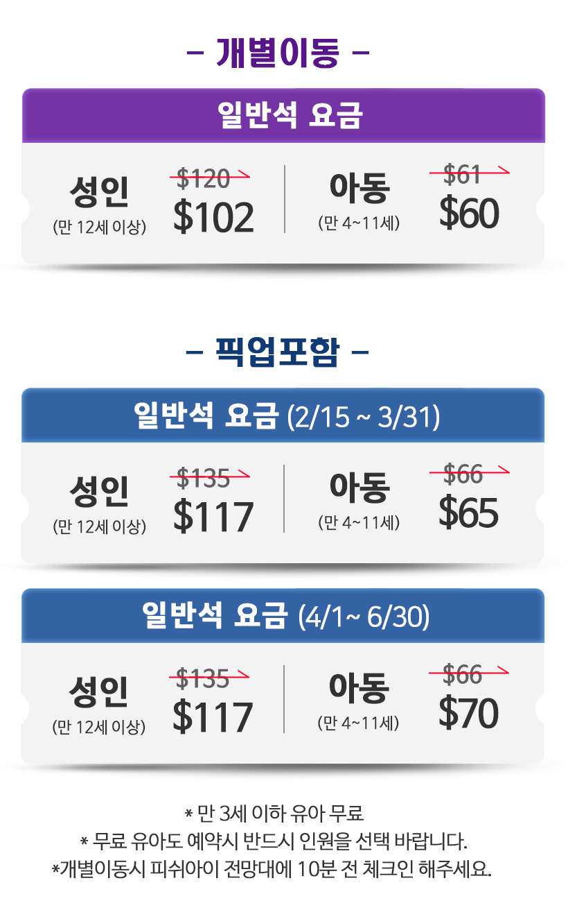 *무료 아동도 예약시 반드시 인원을 선택 바랍니다. 미선택시 현장에서 추가금 발생이 될 수 있습니다.