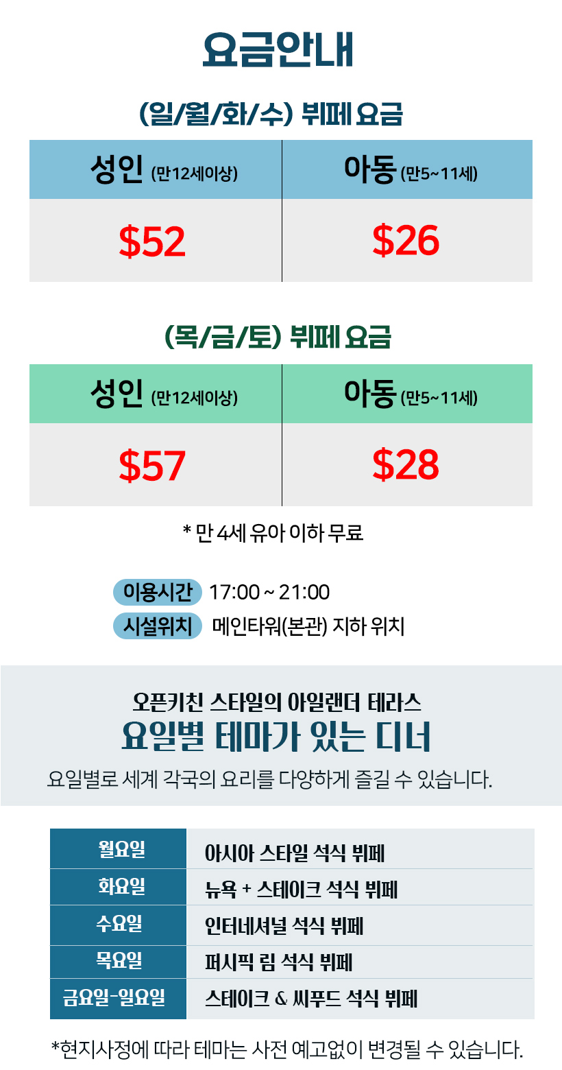 상품 : 힐튼 아일랜더 테라스 디너뷔페