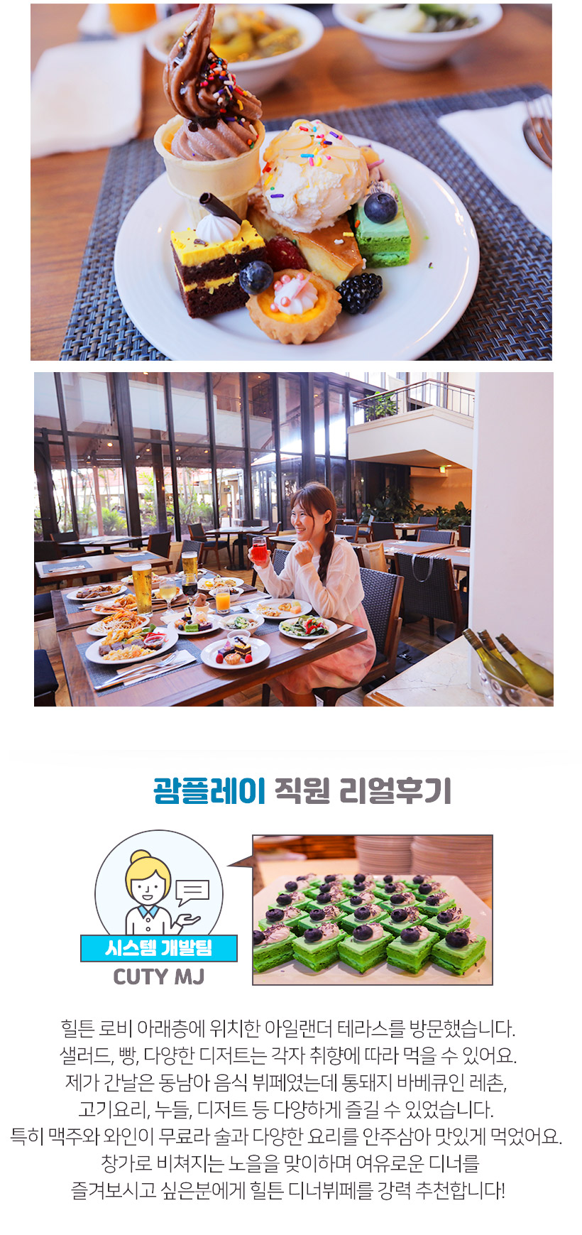 힐튼 아일랜더 테라스 장소도 이쁘고, 음식도 다양하고 좋았어요.