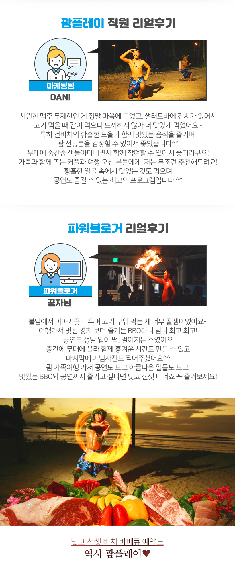 - 장소: 닛코 1층 수영장 옆 비치 (닛코는 로비층이 3층이므로 엘리베이터를 타고 내려가셔야 합니다.)
