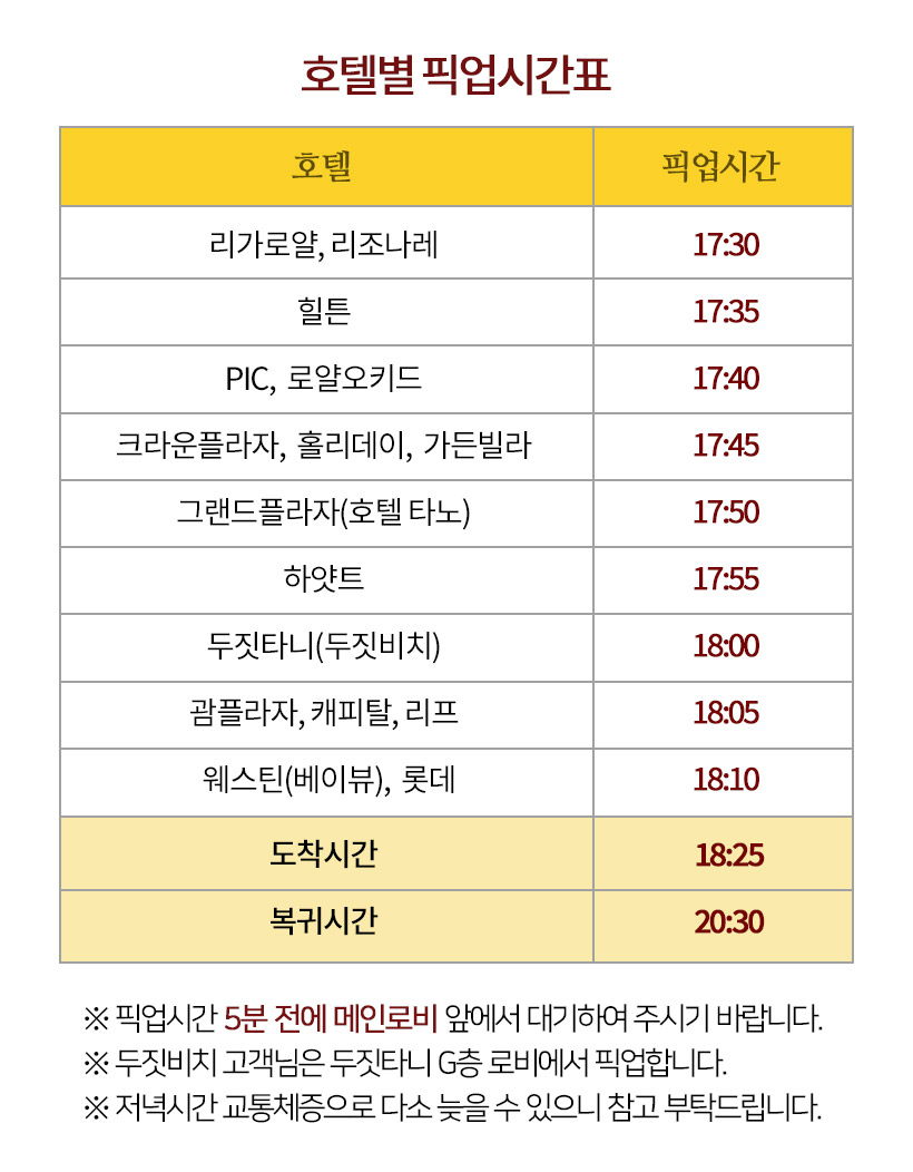- 변경은 이용일기준 3일전까지 1회만 가능하며, 현지사정에 따라 변경이 불가할 수 있습니다.