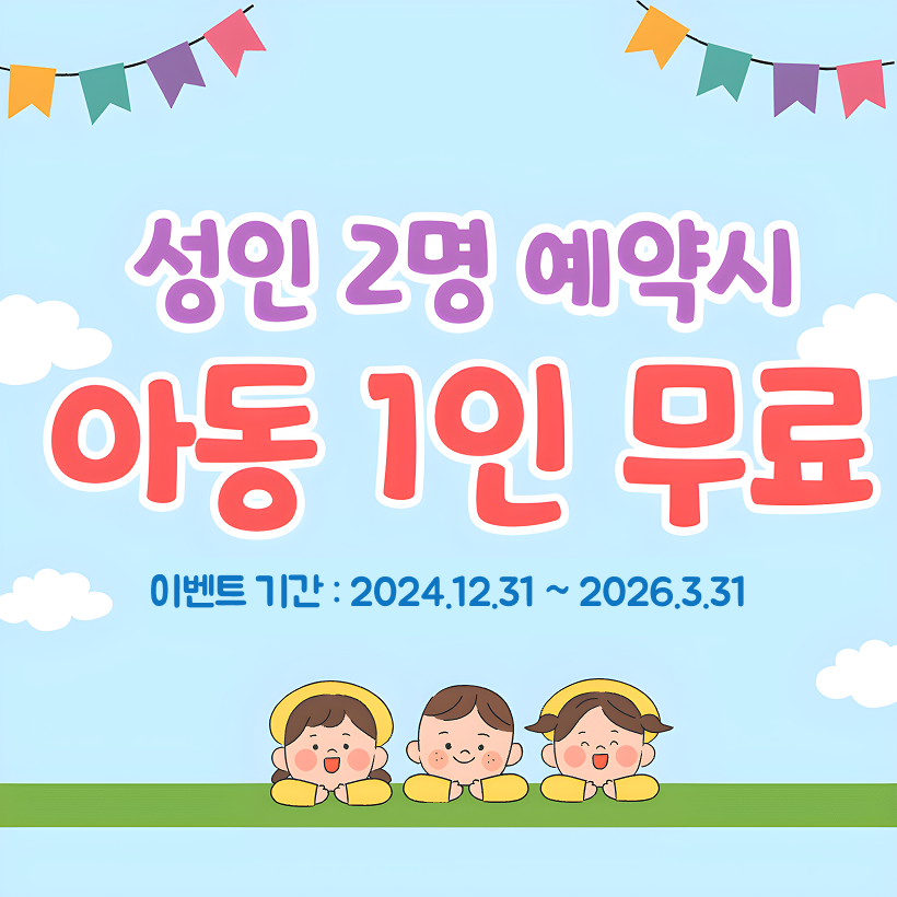 예) 성인 2인 예약 시 아동 1인은 무료 적용