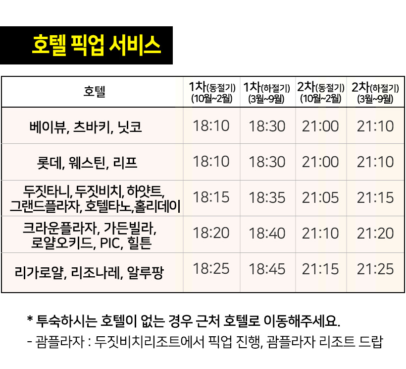 ※ 픽업시 호텔로비입구에서 현지업체 직원이 예약자 성함 확인 후 픽업 진행합니다. (10분전 대기)