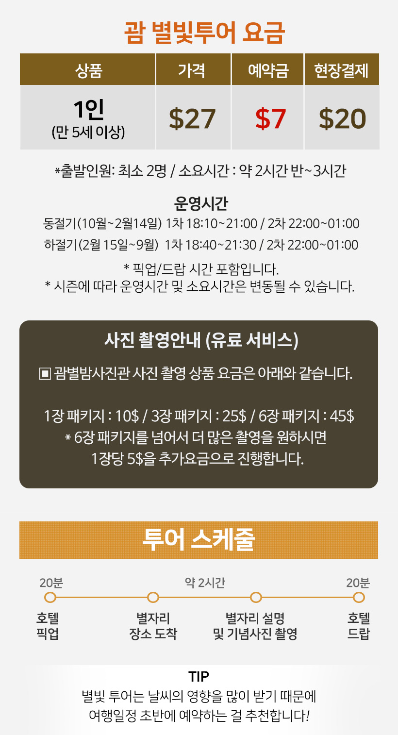 상품 : 괌 별빛투어 별밤 사진관 (2차 22:00~01:00)