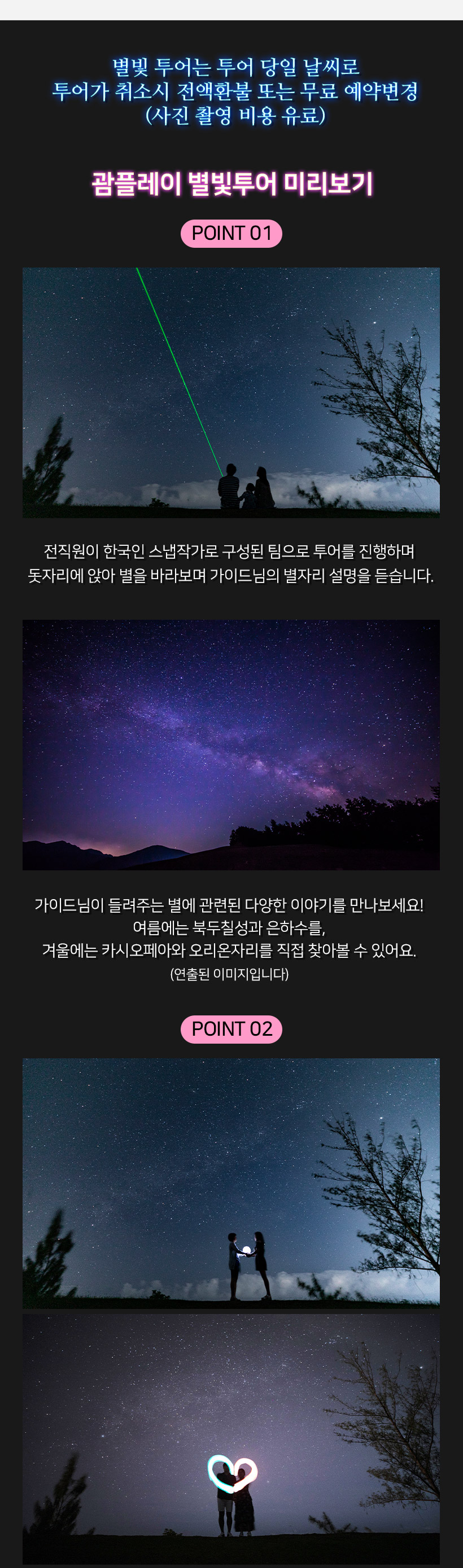 별빛투어는 정말 만족도가 높은 상품이죠~ 작가님들도 친절하시고, 사진도 정말 잘 찍으십니다 ㅎㅎ