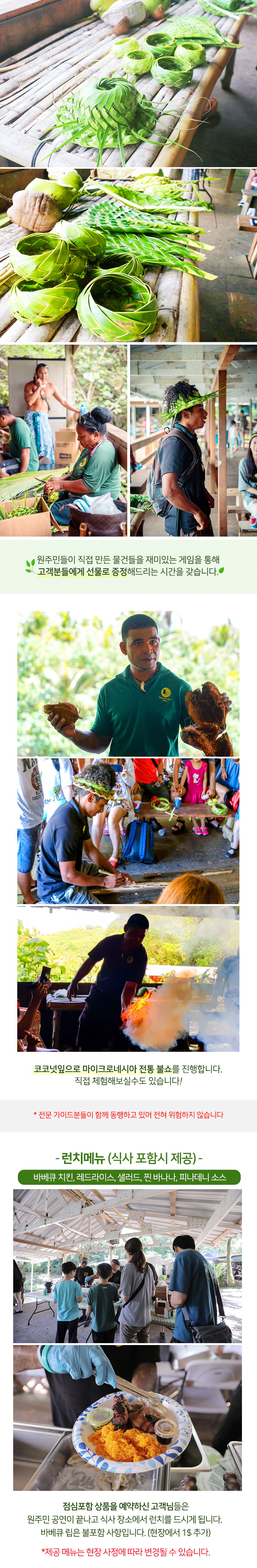 저는 폴리네시아 원주민들 잎파리로 수공예 하는게 관심이 많아서 마을갔을때 거기 수공예 하는 사람들이랑 대화도 하고 친구되서 인스타 등록도 하고 ㅎㅎ 제가 만드는것도 보여줬는데 신기해하고 좋아하더라구요. 한국인 가이드님들도 다 너무 좋으셨고 점심도 맛있어서 깜짝놀람 ㅋㅋㅋ 레드라이스 맛있어요. 괌에서 해변에서만 지내지 말고 내륙쪽 예쁜 자연경관이랑 문화체험도 동시에 해보고 싶으신 분들은 강추.