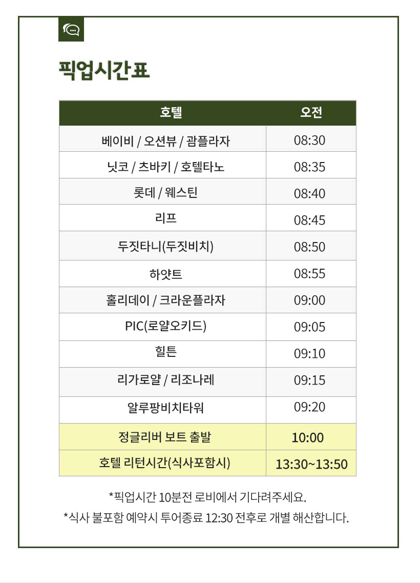 - 호텔 픽업/드롭 서비스 (픽업신청시에만 적용)