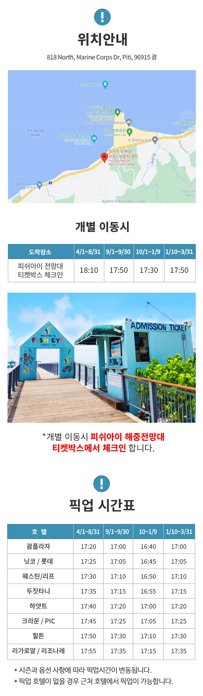 - 픽업 (픽업 시간표 별도참고)